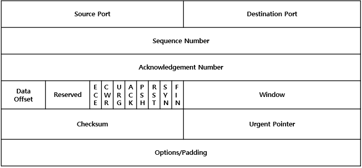 - SYN: 연결 설정 요구를 의미하는 플래그 비트, 가상 회선 연결을 설정하는 과정에서 사용