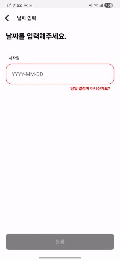 - 화면에 주어진 EditText가 모두 YYYY-MM-DD 형식으로 채워져야 등록버튼이 활성화된다.